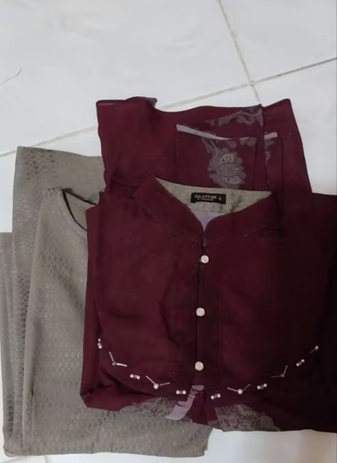 MasyaAllah bagus banget bajunya warnanya juga elegan, warna yang lagi viral ini😅,btw makasih untuk bonus kemeja anak sama ikat rambutnya😇, semoga berkah, dan semoga awet😇✨